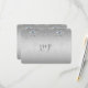 Elegantes Design mit silbernen Kristallen mit Perlen und blauen Diamanten auf einem Graustufen mit silberner Schneeflocke. Verwenden Sie das Tool Anpassen, um Ihre Informationen hinzuzufügen. Sehen Sie auch meine Sammlung Winterkristalle Snowflakes. Bitte beachten Sie, alle sind flache Bilder!