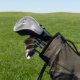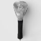 Diese elegante personalisierte Golftapperabdeckung mit Monogramm und Vorname in modernem Weiß- und Holzkohlegrau-Script, auf einem funkelnd Hintergrund silberner Imitate-Folie und Glitzer.