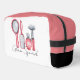 Der Glam Squad ist hier; in diesem Reisegepäck zu sehen. Dieses lustige Design hat eine Haarbürste, einen Spiegel, ein Parfüm und eine Make-up-Bürste. Die obere und die seitliche Leiste sind ein weiches Lachsrosa, ganz unten schwarz. Diese Tasche eignet sich hervorragend für Reisen oder den Fitnessraum. Es ist auch ein großartiges Geschenk.