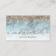 Diese elegante, moderne Visitenkarte besticht durch ein Hintergrundbild aus türkisfarbenem Marmor, das oben durch einen Glitzer mit Bronze-Imitaten gerahmt ist. Personalisieren Sie es mit Ihrem Namen in Bronze-farbenen Handschrift-Stil-Skript und Ihre Geschäftsinformationen in serifenlosen Sans-Schriftart. Ein Bildschirm mit weißem Farbverlauf trägt dazu bei, den Pop des Textes zu erzeugen. Auf der Rückseite befindet sich Bronzetext, der auf einem Marmor- und Glitzer-Design abgestimmt ist. Ideal für Haarstylisten, Make-up Künstler und Ästhetiker.