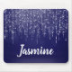 Phantastisches personalisiertes Mauspad mit blauem Hintergrund und glamouröser vertikaler Leuchtfolge. Fügen Sie Ihren Namen oder Monogramm für ein einzigartiges Geschenk hinzu. Schriftart und Farbe können leicht verändert werden.
