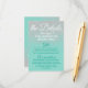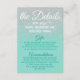 Glamouröse, schicke und elegante Imitate druckten funkelnd weißen Glitzer auf aquamarinem, grünen Hintergrund, die Informationskarte für Hochzeiten. Dieses klassische und raffinierte Design eignet sich perfekt für den anspruchsvollen, stilvollen und trendigen Absolventen. Personalisieren Sie Ihre eigene Nachricht auf der Vorderseite und ein individuelles Monogramm auf der Rückseite. Das gesamte Foto-Druckdesign.