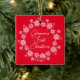 Glamma's First Christmas Ornament Set auf einem roten Hintergrund gerahmt mit einem weißen Schneeflocken Kranz. Ein Wonder Großelternweihnachtsgeschenk wird sicher für viele Jahre geschätzt werden. !