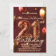 Glamorous Burgundy Red Gold Balloon 21st Birthday Einladung