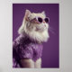 feline, violet, diva, luxury, sunglasses, fluffy, kitten, dress, vibrant colors, chic decor, humorous portrait