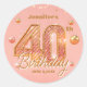 Glamorous Chic Glitter Rose Gold 40th Birthday Runder Aufkleber