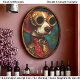 Steampunk Beagle Portrait with Brass Goggles and Ornate Victorian Jacket, rich teal damask background, anthropomorphic dog artwork for decoupage and mixed media.bThis striking steampunk beagle features a noble side profile, dressed in an elaborate Victorian brocade jacket in deep black and antique gold, accented with a quilted crimson lapel and mechanical collar detail. Oversized brass aviator goggles with intricate gears and metal fittings rest confidently over the eyes, creating a bold industrial contrast against the dog’s soft white and chestnut coat.bThe background is a moody teal with subtle vintage damask patterning, enhancing the dark academia and gothic romance undertones while maintaining warmth through the rich gold and red palette. The expression is calm, intelligent, and slightly enigmatic — suggesting explorer, inventor, or gentleman adventurer.
