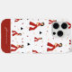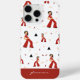 Muster mit stilvoller und modischer Frau mit dunklem Haar und rotem Kostüm auf weißem Hintergrund