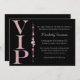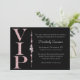 Diese individuelle Party Einladung präsentiert sich mit einem glamourösen und eleganten Thema auf schwarzem Hintergrund. Der VIP-Titel wird in einem weichen rosa Glitzer auf der links gedruckt. Ein Streifen rosa Diamanten trennt den Textbereich. Es ist perfekt für eine Geburtstagsfeier, ein Brautparty oder andere tolle Feiern.