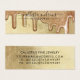 Diese kleine Ohrring/Ohrring-Visitenkarte ist der perfekte Weg, um Ihre Verpackung zu stilisieren und Ihren eigenen Flair und Ihre Persönlichkeit hinzuzufügen. Es enthält Imitate, die funkelnd vergoldete, dicke Glitzer-Tropfen auf einem goldenen Hintergrund bedruckt haben. Die Typografie ist ein elegantes kursives Drehbuch mit einem modernen Serif-Schriftart, um zu entsprechen. Es ist schick, hübsch, einzigartig und luxuriös; die perfekte Art, Ihr Unternehmen zu werben und Ihr Marketing und Werbematerial für Ihre Kunden zu stilisieren. (Ohrring Löcher sind nur gedruckte Marker, Puncturing muss vom Kunden abgeschlossen werden) **Matching Halsketten Display Karte ist verfügbar. Kontakteditor. ***WICHTIGE HINWEIS FÜR DESIGN: Für individuelle Designanfragen, z. B. passende Produktanfragen, Farbänderungen, Platzierungsänderungen oder andere Änderungswünsche, klicken Sie bitte auf den "Nachricht"-Button oder senden Sie dem Designer direkt eine E-Mail an lafemme.art@gmail.com. Sie können ihr sogar eine Anfrage für ein komplett individuelles und neues Design schicken.