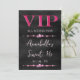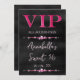Diese glamouröse VIP-Party Einladung zeichnet sich durch ein funkelnd, feminines Design auf schwarzem Hintergrund aus. Der VIP-Titel wird in einem Schriftart im Rosa-Stil gedruckt, gefolgt vom Veranstaltungstitel. Zeichnen von rosa Diamanten trennt den Text. Der Ort und die Uhrzeit des Party oder Ereignisses werden auf der Rückseite ausgegeben. Es ist perfekt für eine Geburtstagsfeier, süße 16, Brautparty oder andere Feiern.