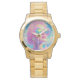 Glamouröse Neonfrau mit funkelnder Brille Armbanduhr