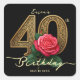 Feiern Sie diesen wichtigen Meilenstein mit Raffinesse mit diesem eleganten schwarzen und goldenen 40. Geburtstagsaufkleber. Das Kunstwerk zeigt große, verzierte goldene Typografie mit aufwendiger Filigran-Schriftrolle, akzentuiert durch eine einzelne, realistische rote Rose mit tiefgrünen Blättern. Der dunkle schwarze Hintergrund lässt den Goldfolieneffekt und die botanischen Elemente hervortreten und schafft eine luxuriöse Ästhetik.