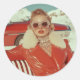 Glamouröser Retro Winterstil im alpinen Ambiente Runder Aufkleber