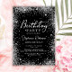 Moderner Schwarz-Silber-Glitzer 60. Geburtstag Einladungen. Das Design der gürtelmädchenhaften Karteikarte ist mit einem handgeschriebenen Kalligrafieschrift, schwarzem Hintergrund mit einem losen Glitzer-Rahmen versehen. Einfach zu personalisieren, perfekt für jedes Alter.