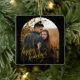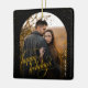 Dieses elegante Ferienhaus Ornament zeichnet sich durch ein glamouröses Design mit einer Touch von Funkeln aus. Ihr Foto wird in einem wunderschönen goldenen Bogen präsentiert, Set vor einem schwarzen Hintergrund mit einem zarten goldenen Glitzer. Der "Happy Holidays"-Gruß ist in einem stilvollen Script-Schriftart, auch in Gold, geschrieben und verleiht dem Gruß eine Touch von Eleganz und Festlichkeit. Der Rücken des Ornaments setzt das glamouröse Thema mit einem Schwarz-Gold-Design und einer herzlichen Botschaft fort, die die Wichtigkeit der Bewunderung alltäglicher Momente unterstreicht. Das gesamte Design ist raffiniert und zeitlos, es ist eine perfekte Wahl für Paare, die ein einzigartiges und stilvolles Urlaubsornament zu senden an Familie und Freunde.