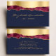 Diese elegante moderne Visitenkarte verfügt über eine stilvolle Grafik am oberen Rand in burgunderroter und goldener Faux-Folie. Personalisieren Sie sie mit Ihrem Namen in goldfarbener Handschrift und Geschäftsinformationen in sans serif Schriftart auf navyblauem Hintergrund. Das Design wird auf der Rückseite wiederholt, mit Platz für Ihre Kontaktdaten.