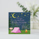 Glamping Geburtstagsfeiern mit einem niedlichen rosa Zelt auf einem nächtlichen Waldhintergrund. Diese niedlichen Mädchen Camping Geburtstagsfeier Einladungen sind einfach für Ihre Veranstaltung angepasst, indem Sie einfach Ihre Angaben in den Schriftart Stil und Wortlaut Ihrer Wahl.