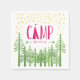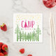 Ein rustikaler und dennoch schicker personalisierter Aufkleber für ein Themenzelt "Glamping" mit einem Zelt in einem Baumbestand unter Imitaten, das Goldsterne umhüllt.