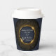 Elegante und luxuriöse Jubiläumszeitung mit glänzender goldener Tasse und Glitzer. 50. Hochzeitstag