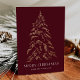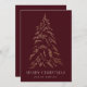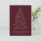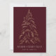 Moderne und elegante Urlaubskarte mit schneebedeckten Imitaten mit goldfarbenem Kiefernwald und bordeauxfarbenem Hintergrund. "Frohe Weihnachten" wird in einem weißen, modernen Serif-Schriftart mit Ihrem Namen oder benutzerdefinierten Text unten angezeigt. Die Non-Foto-Urlaubskarte kehrt zurück, um drei goldene Kiefernbäume mit Ihrer individuellen Nachricht unten in weißem Text anzuzeigen. Dieses Design ist ideal, um als Ihre Familie Weihnachtskarte oder Business/Corporate Ferienkarte zu verwenden.