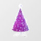 Diese Fensterfolie hat einen glänzenden dunkelrosa und silbernen Weihnachtsbaum mit Sternen auf einem weißen sternförmigen Teppich.