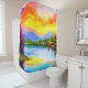 Glanzfarbener zeichn von Sonnenuntergang über dem Duschvorhang