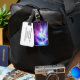 Ein silberner Fußball scheint als Held auf einem blauen und lila Hintergrund heller Strahlen.