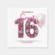 Feiern Sie stilvoll mit dieser individualisierbaren Sweet 16 Papierserviette! Das Design besticht durch eine blendende "16", die mit rosafarbenen und weißen Edelsteinen geschmückt ist und dem Anlass einen luxuriösen Glanz verleiht. Darüber ist "Sweet" elegant geschrieben und ergänzt die schicke Ästhetik. Ein festlich rosa Ballon verstärkt das feierliche Ambiente, während der individuell anpassbare Name und das Datum dafür sorgen, dass dieser Sake einzigartig ist. Ideal, um jedes Detail Ihres Meilenstein Events zu glänzen!