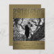 Zeige dein Verlobung Foto oder einen Lieblings-Snapshot mit diesen speichern Sie die Datumskarten. Sie zeichnen sich durch Ihr horizontales oder landschaftsorientiertes Foto-Set vor einem goldfarbenen Hintergrund aus, der durch eine Illustration funkelnder Saitenlichter hervorgehoben wird. Ihre Informationen erscheinen unter dem Foto in eleganter schwarzer Schrift.