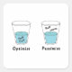 Glas halb voll oder halb leer Optimist Pessimist Quadratischer Aufkleber