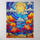 Stained glass effect; illustration of storm clouds and autumn trees. It is an original painting with colorful clouds and trees and Looks like a loop. Can be purchased as a physical poster or digital poster downloaded in high resolution to print on your self.