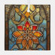 Glasfenster in Blau, Orange und Gold Ornament Aus Glas