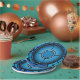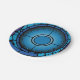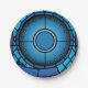 Ein blaues Glasfenster in einer Kirche. Dieses Design sieht wirklich effektiv aus bei diesen Paper-Tellern