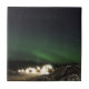 Die Glasiglus im arktischen Schnee-Hotel in Finnland werden unter einer schönen Anzeige der Nordlichter geleuchtet!