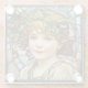 Ein viereckiger Untersetzer mit Buntglasdesign, der ein Weihnachtskind darstellt, das in heiligen Blätter und Beeren gekrönt ist.