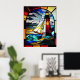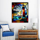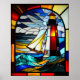 Das Design besticht durch eine atemberaubende, mit Imitaten gefärbte Leuchtturmszene.