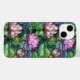 Schönes iPhone 14 Gehäuse mit einem nahtlosen Lotus-Muster im Buntglasstil.
