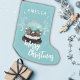 Glass Snowball Winter Village Foliage Weihnachten Kleiner Weihnachtsfest Strumpf. Märchenhäuser im Winter mit Schnee und schönen Schneeflocken. Schöne Pflanze mit weißem Klettern. Ein froher Weihnachtswunsch in einem trendigen Drehbuch. Füge Deinen Namen hinzu.