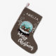 Glass Snowball Winter Village Foliage Weihnachten Kleiner Weihnachtsfest Strumpf. Märchenhäuser im Winter mit Schnee und schönen Schneeflocken. Schöne braune Kletterpartie Pflanze. Ein froher Weihnachtswunsch in einem trendigen Drehbuch. Füge Deinen Namen hinzu.