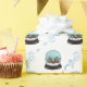 Glass Snowball Winter Village Snowy House Weihnachtswrapping Papier. Märchenhäuser im Winter mit Schnee und schönen Schneeflocken. Schöne blaue Kletterpartien - Blattwerk auf weißem Hintergrund.