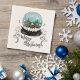 Festliche Glass Snowball Winterdorf Klettern Pflanze Frohe Weihnachten Napkins. Märchenhäuser im Winter mit Schnee und schönen Schneeflocken. Schöne braune Kletterpartie Pflanze. Ein froher Weihnachtswunsch in einem trendigen Drehbuch. Sie können jeden Text auf den Servietten ändern.