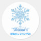 Dieser elegante Gunst-Aufkleber eignet sich ideal, um ein Brautparty mit einem winterlichen Wunder zu feiern. Im Mittelpunkt des Designs steht eine große, komplexe Schneeflocke aus Glas. Dieses Label ist zart, doch auffällig und eignet sich perfekt, um während der Wintermonate oder mit einem Winter- oder Frostthema eine Veranstaltung zu feiern.