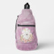 Ein wunderschönes Buntglas-Bild eines weißen Samoyed Hundes in einem lililienförmigen Garten ist pink und personalisiert, wenn Sie wählen.
