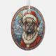 Hier ist ein hübsches Glasdekor mit einem Thema aus Buntglas, mit einem zauberhaften Mops, der in seinem Hut und seiner Jacke aus dem Weihnachtsmann gekleidet ist. Hinter dem Hund liegt ein schneebedecktes Winterdorf mit goldenen Sternen. Dieser Schmuck macht ein schönes kleine Geschenk oder Dekoration für den Haushalt, der ein wenig Mops Liebe!