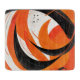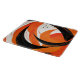 Dieses Glasschneidbrett wird in einem farbenfrohen abstrakten Kunstdruck gezeigt. Die Farben sind schwarz, orange und weiß. Passen Sie dieses Objekt an oder kaufen Sie, wie es ist. Bild
