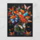 Glasvase mit bunten Schmetterlingen und Blume. Postkarte