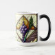 Beginnen Sie Ihren Morgen mit dem warmen, leuchtenden Glanz des Buntglasbechers "Glass Grapes and Wheat". Diese hochwertige Keramiktasse zeigt eine exquisite rundum verlaufende Illustration von tiefen, amethystfarbenen Trauben und lebendigen, smaragdgrünen Weizenhalmen, eingebettet in einen klassischen, diamantförmigen Kathedralglasrahmen.