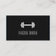 Eine moderne, unbedeutende Geschäftskarte mit der weißen vektorKontur eines Dumbbell mit gerundeten Gewichten über einem glatten schwarzen Hintergrund der dunklen körnigen Beschaffenheit. Personifizieren Sie leicht mit Ihren Kontaktdetails. Groß für freiberuflich tätige persönliche Trainer, Fitnesslehrer und jedermann in der Fitnessindustrie.