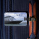 Personifizieren Sie diesen SeeGepäckanhänger mit Ihrem Monogramm auf Seiten einem und Kontaktinformationen über das andere. Er kennzeichnet den reizenden Bogen eines s-Klassen-Kreuzschiffs, während das Schiff ihn Ausweg zum Meer über den Schiffskanal am Hafen Canaveral macht.